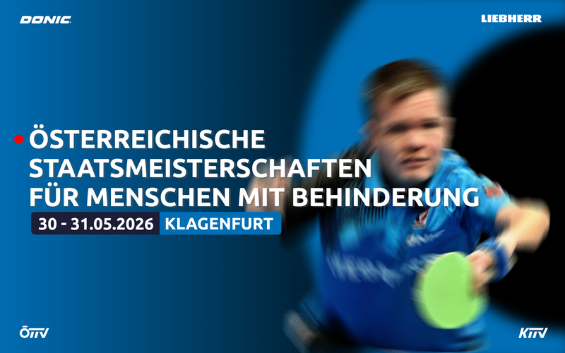 Erstmals ist 2026 der Österreichische Tischtennis Verband Veranstalter der Österreichischen Staatsmeisterschaften für Menschen mit Behinderung. Ausgetragen werden diese Meisterschaften im Sportpark Klagenfurt. Ausgetragen werden Bewerbe im Amputierten-, CP- und Rollstuhlsport sowie im Mentalbehindertensport ausgetragen. Staatsmeistertitel werden im Einzel, Doppel und Mixed-Doppel vergeben.