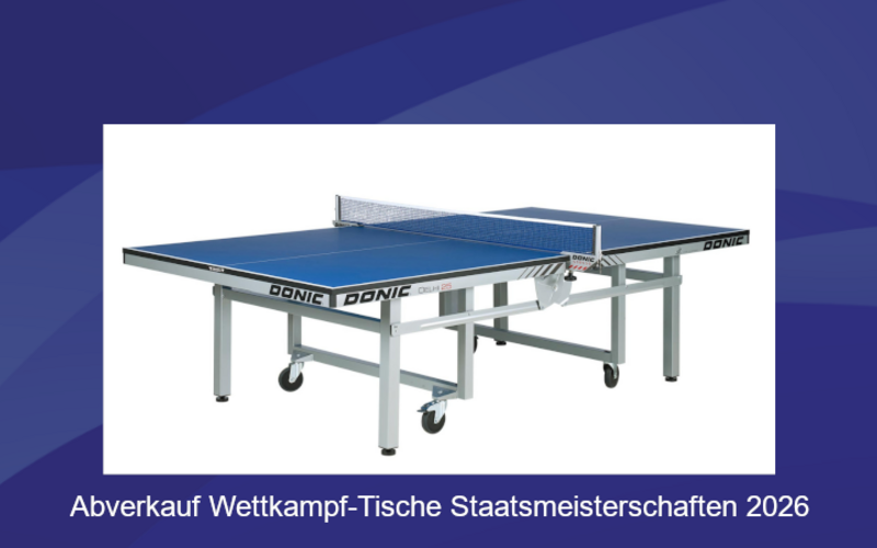 Nach den Staatsmeisterschaften stehen die dort eingesetzten Tischtennismaterialien wieder zum Verkauf.