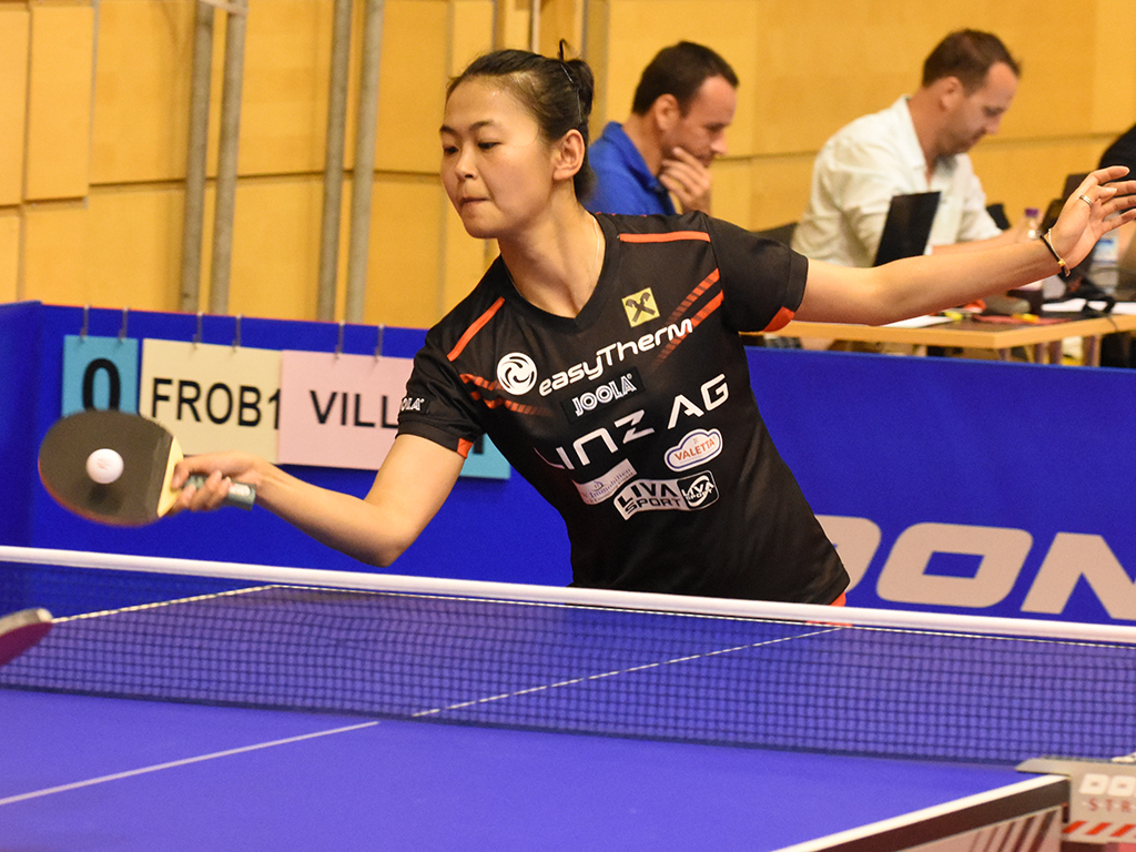 Auch ohne die scheidende Liu Jia und ohne Mo Zhang, die Linz AG Froschberg/2 im Spiel gegen den TTV Wiener Neudorf verstärkte, war Tabellenführer und Titelfavorit Linz AG Froschberg/1 zu stark für den TTC Übelbach. Die Damen aus der Steiermark hätten zumindest ein Remis erreichen müssen, um in der Tabelle noch am LZ easyTherm Linz-Froschberg vorbeizuziehen. Linz AG Froschberg/1 leistete dem Schwesternverein jedoch Schützenhilfe. Staatsmeisterin Sofia Polcanova und die Schwedin Linda Bergström waren, in heimischer Halle, für keine Übelbacherin zu gefährden. Beide konnten sowohl Melanie Luginger, als auch Adriana Minerova, im Dress der Steirerinnen, mit 3:0 besiegen. Den fünften Punkt für Linz AG Froschberg/1 steuerte das Doppel Polcanova/Aurelie Maienburg bei. Lisa Storer, die sich in drei Sätzen gegen Maienburg durchsetzen konnte, sorgte für den Ehrenpunkt des TTC Übelbach. Die Damen aus der grünen Mark treffen, nach dieser 1:5 Niederlage, nun beim Finalturnier auf die viertplatzierte Mannschaft von Linz AG Froschberg/2, während Linz AG Froschberg/1 das Titelmatch gegen das LZ bestreiten wird.