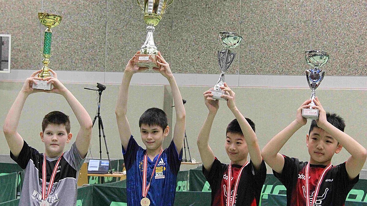 Burschen: 1. Louis Fegerl (NÖ), 2. Julian Luginger (OÖ), 3. Michael Zhang (OÖ) und Felix Liu (OÖ)