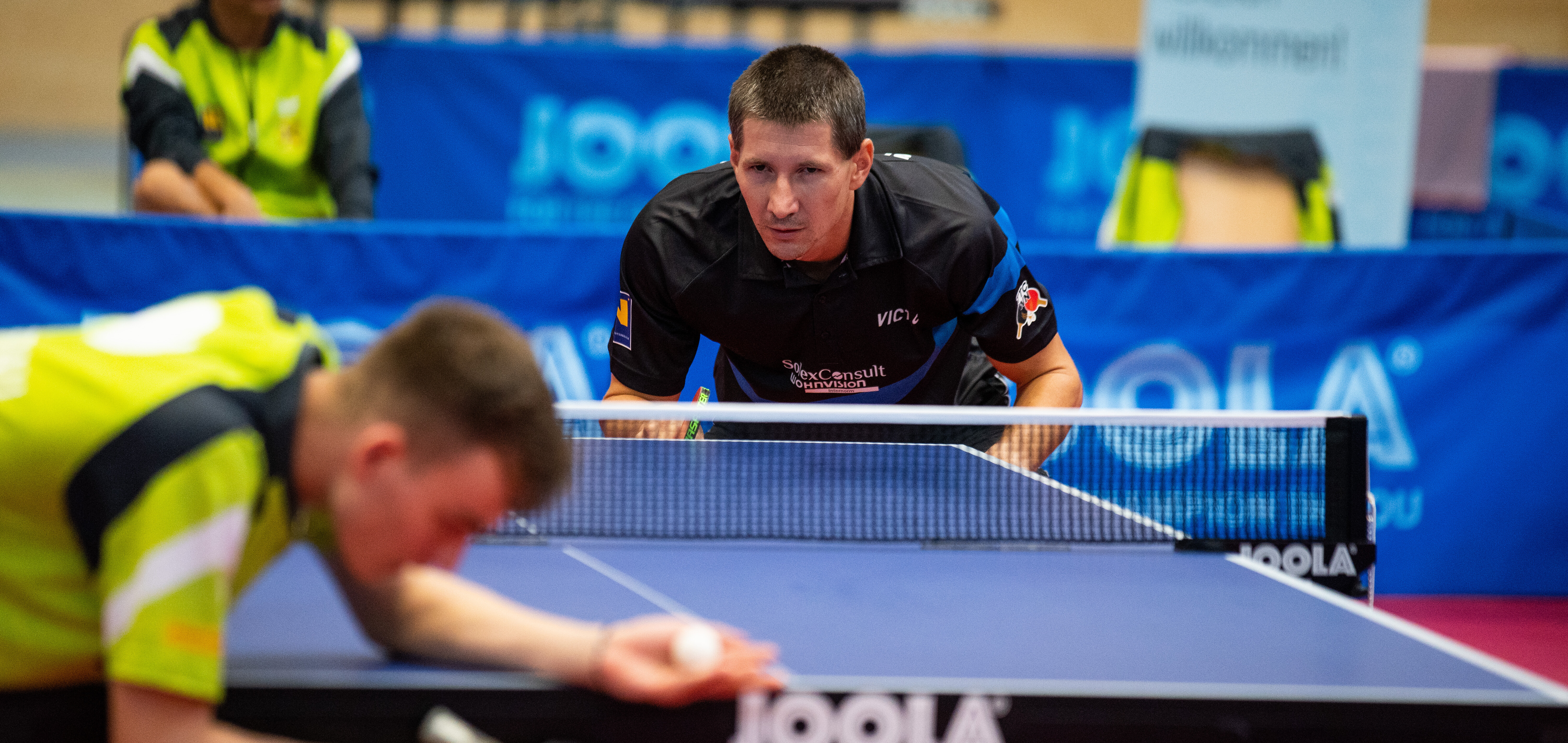 Konecny blieb gleich an der Platte stehen und holte mit dem 3:1-Sieg über Simon Pfeffer die Führung für sein Team zurück. Die beiden Kontrahenten lieferten sich ein sehenswertes Match, mit teils spektakulären Rallys.
